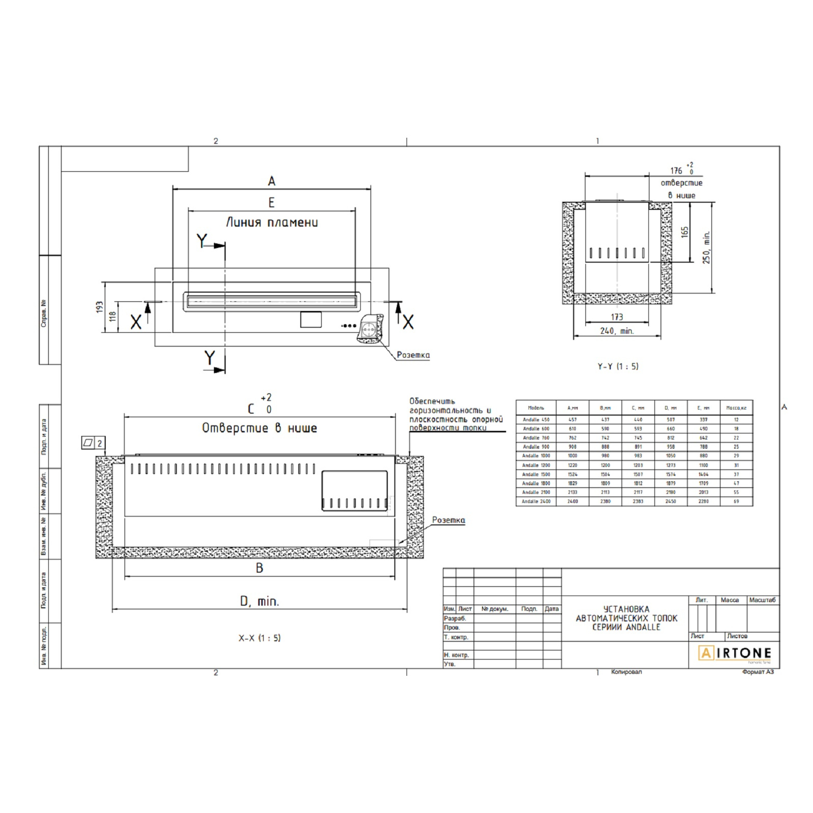 - Тип камина: Встраиваемый