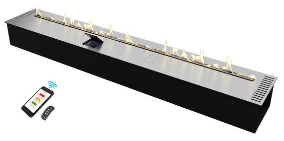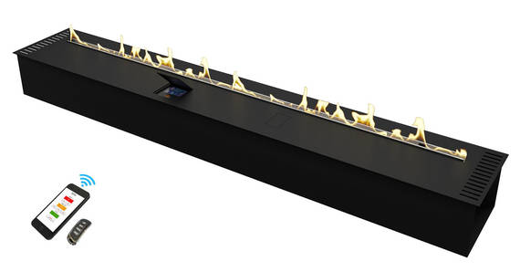 Автоматический биокамин Zefire Automatic 1800 является настоящим прорывом в современном производстве. Благодаря специальной технологии управлять прибором можно при помощи смартфона, планшета или другого гаджета. При этом такое устройство совершено безопасно в использовании, не выделяя запаха, гари и дыма. В случае возникновения любых аварийных ситуаций камин отключается автоматически. Что касается его охлаждения, то за это отвечают встроенные кулеры. Линия огня: 1600 мм.