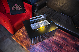 Kvadro Cube органично впишется в помещение, оформленное в любом стиле – лофт, хай-тек или классика. Отделка каркаса плитами под американский орех делает биокамин оригинальным предметом интерьера. Именно поэтому Kvadro Cube подходит для гостиной в коттедже или квартире, для уютного ресторана или комнаты отдыха в офисе.