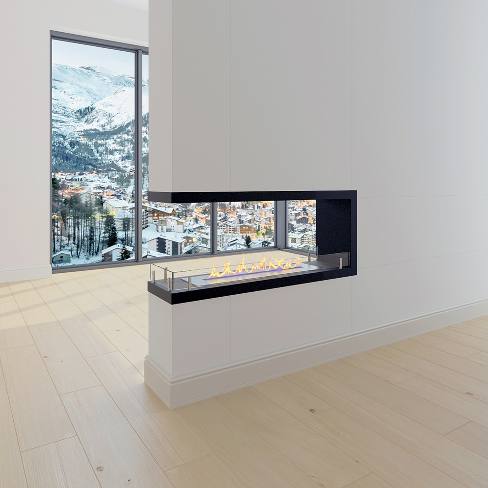 • Фронтальную часть биокамина Firezo Estremità Finestra можно оснастить защитной термостойкой перегородкой из закаленного стекла (не входит в базовую комплектацию). Такая перегородка обеспечит дополнительную защиту и придаст камину более законченный вид.