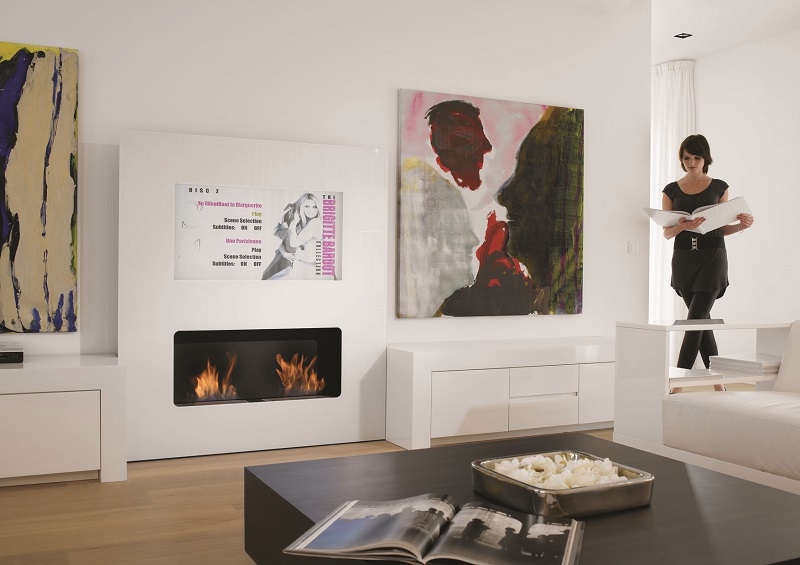 Биокамин Safretti Curva ST белый со встроенным жидкокристаллическим телевизором Samsung. Это прекрасный симбиоз двух продуктов, каждый из которых дополняет друг друга. Оригинальное дизайнерское решение для совмещения телевизора за зеркальным стеклом и уютного камина под ним.