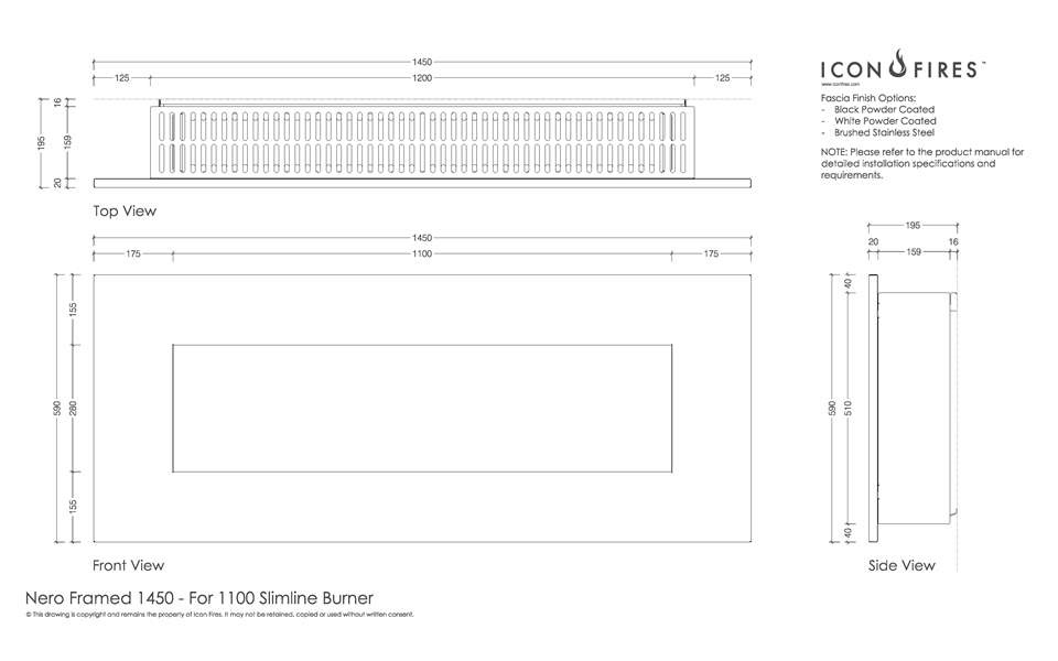 Настенный биокамин Nero 1450SS с декоративной рамкой из брашированной нержавеющей стали комплектуется горелкой ICON FIRES Slimline 1100mm.