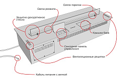 Датчики биокамина: перегрев, тряска, наклон, утечка топлива, превышения уровня углекислого газа. В случае возникновения нештатной ситуации, биокамин автоматически отключается, а на дисплее отображается окно с информацией об ошибке.