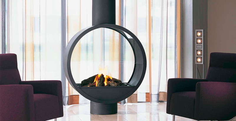 - Двухсторонний камин представляет собой отдельно стоящий камин, который подходит для сжигания газа или древесины.