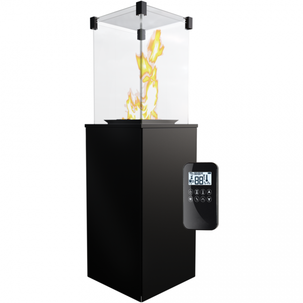 - Заполняется жидкостным газом из баллона, который скрыт в корпусе. Пламя закрывается в стеклянной камере, которая защищает нас от прямого контакта с огнем. Это позволяет наслаждаться игрой пламени, которое находится под полным контролем. Нижняя часть корпуса устройства изготовлена из стали, покрытой порошковой краской. Благодаря этому выдерживает повреждения. В устройстве использовано закалённое стекло толщиной 4 мм.