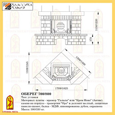 Материал: плиты - мрамор "Галала" или "Крема Нова" (Антик), камни на корпусе - травертин "Оро" и доломит желтый, защитные панели-шамот, балка - МДФ, шпонированна дубом, окрашена