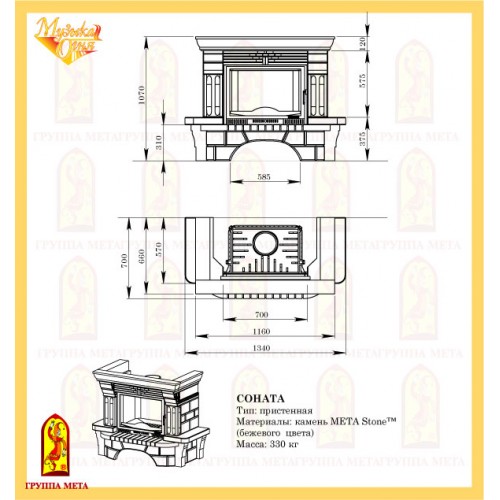 Каминная облицовка Соната изготовлена из камня Meta Stone™ мягкого бежевого оттенка. Камень очень прочный и долговечный, не выцветает, идеально подходит для эксплуатации в условиях Российского климата. Предназначена для оформления чугунных и стальных топок как российского, так и импортного производства с шириной фасада 700 мм.