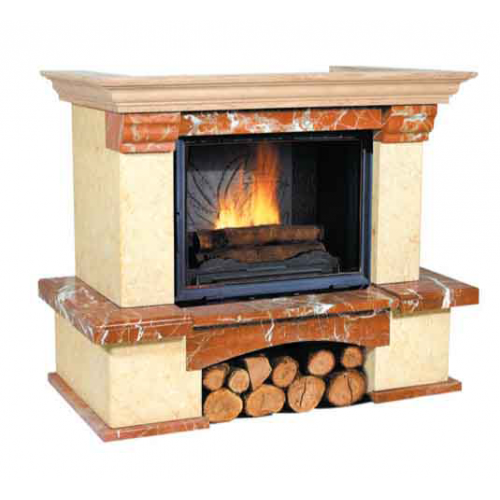 Оригинальный и способный гармонично дополнить даже самый изысканный интерьер, камин Bella Italia Florencja доступен в двух вариациях – пристенном и угловом исполнении. Облицовка имеет идеальное сочетание доступной цены и первоклассных эстетических свойств. Здесь удачно скомбинирован патинированный мрамор Sunny Light Yellow с полированным мрамором Rojo Allicante, изящные прожилки которого разбавляются разноцветными вкраплениями, различными по форме. Завершает общую композицию элегантная балка из светлого дуба.