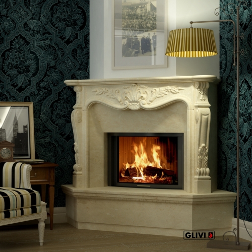 - Камин выполнен из полированного мрамора Crema Marfil.