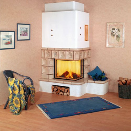 Пристенно-угловой камин Hark 3/80.0 из изразцов. В комплект облицовки входят опорная рамка с крепежами, лента, клей, DVD с инструкцией по установке, бетонный цоколь  (если предусмотрен), и шамотный короб с проматом (если короб конструкционно входит в облицовку). В комплект не входят дымоотводные трубы, промат для изоляции стен, гофра для подвода воздуха под облицовку. Решётки поставляются опционно.