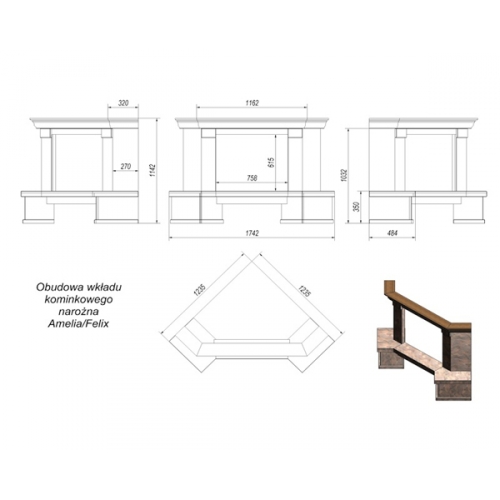 Каминная облицовка Kratki Taormina угловая (Amelia/Felix)