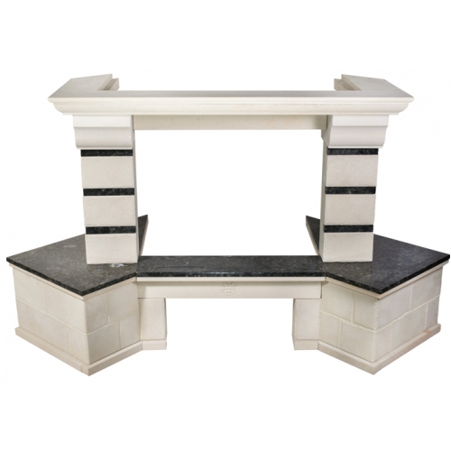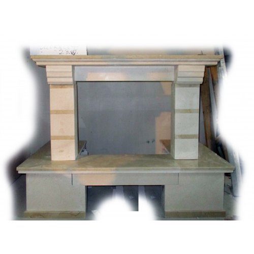 - Материал: шлифованный песчаник в форме кирпичиков, золотистый или белый цвет, полки - LabradoriteПодходящие топки шириной „700 мм” с прямым стеклом