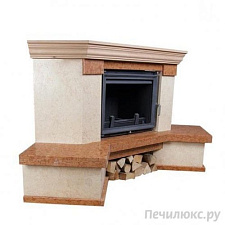 Пристенный камин Palazzetti Sestri выполнен из белого бучардированного камня. Отделка этой облицовки может быть выполнена из полированного мрамора разных цветов. Полочка этой модели изготовлена из древесины ореха.