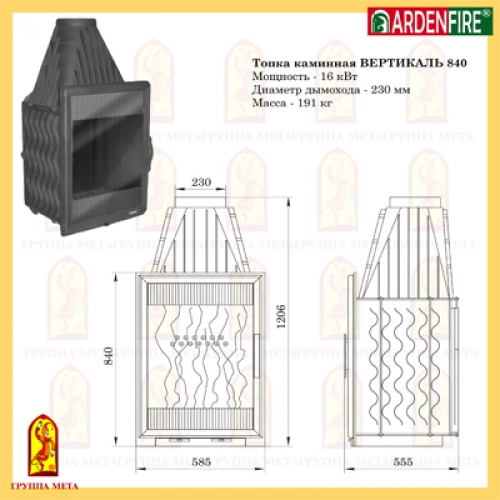 Каминная топка Мета Ardenfire Вертикаль 840