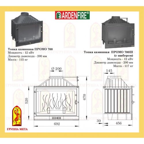 Группа МЕТА представляет каминные топки ARDENFIRE изготовленные из чугуна. Топки собираются на предприятии Группы МЕТА из комплектующих и деталей разработанных и произведённых во Франции. Для уплотнения разъёмных элементов топки используются термостойкий шнур. Все изделия ARDENFIRE укомплектованы специальными термостойкими стёклами (стеклокерамикой Neoceram N-O производства Японии).