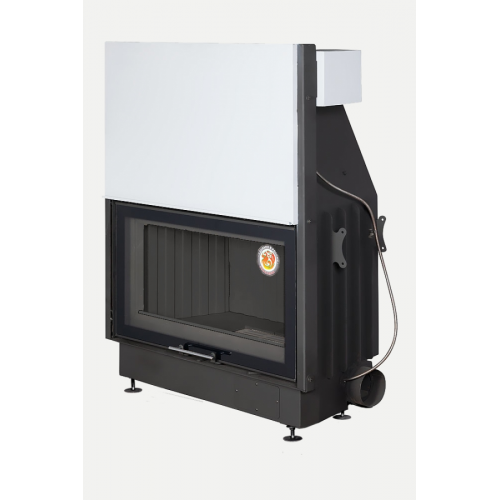 Входные патрубки ф125мм,расположенные слева и справа в нижней части печи, служат для подводки воздуха для горения, вторичного дожига и отчистки стекла, позволяют брать воздух через систему трубопроводов для горения из другого помещения (например подвального). Дымоходный патрубок ф250мм снабжен встроенной шиберной заслонкой с дистанционным приводом, выполненным из нержавеющей стали, Позволяющей в зависимости от уровня горения регулировать тягу. В горизонтальном положении, положение закрыто, перекрытие патрубка шиберной заслонкой составляет 75%, что не позволит скапливаться угарному газу. Конвекционные патрубки ф125мм в верхней части топки, служат для отвода теплого воздуха по трубопроводам от печи , для равномерного прогрева помещения и/или обогрева другой комнаты. Механизмы регулировок и подъёма двери , кроме привода шиберной заслонки, защищены кожухами от повреждения во время монтажа и эксплуатации. Предусмотрены съёмные проушины, для удобства транспортировки и монтажа. Футеровка топки выполнена из литьевого шамота.