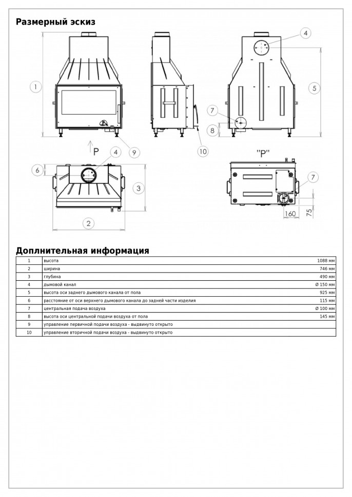 - Габаритные размеры ШxГxВ, (мм): 746x490x1088