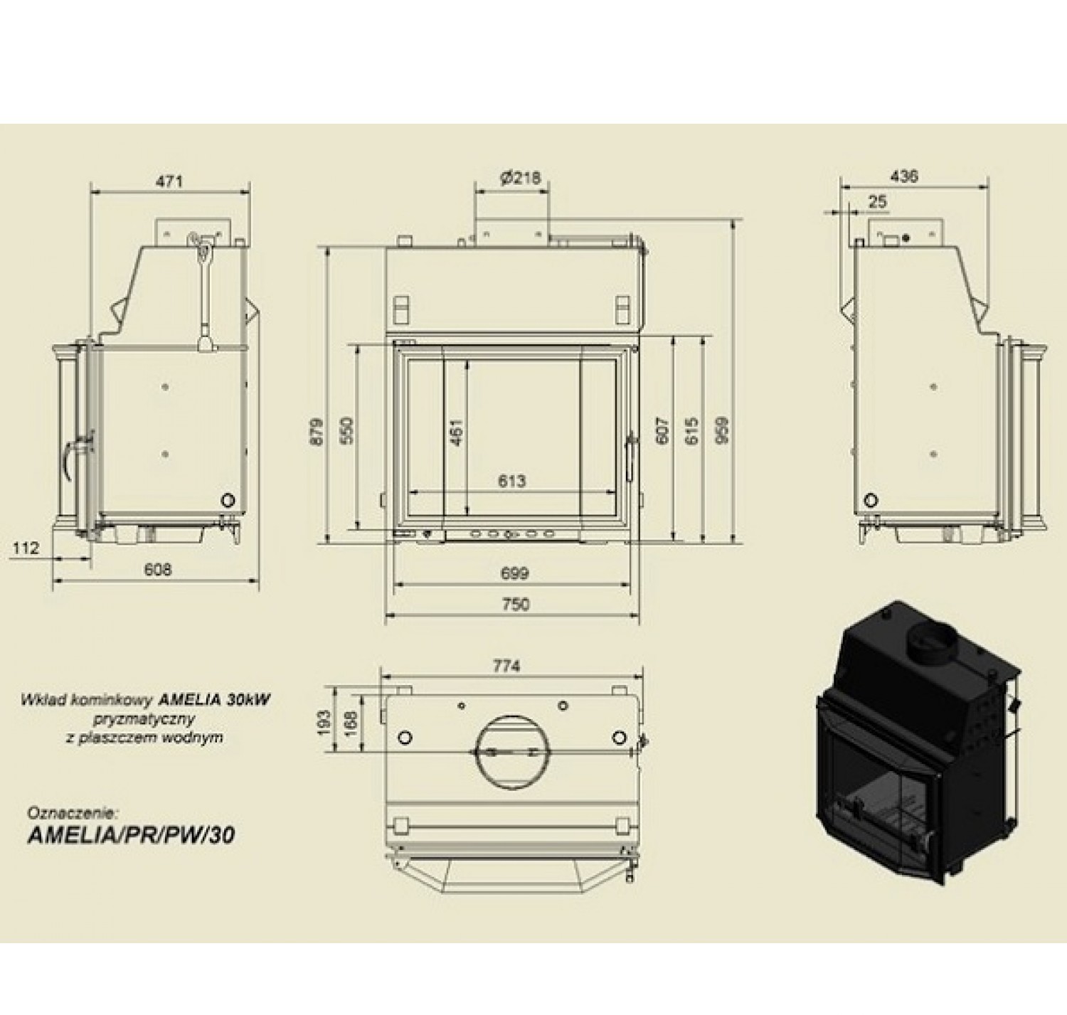Каминная топка Amelia/PR/PW/30 с водяным контуром