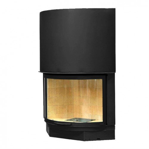 Панорамная, круглая топка. Цвет - Черный. Кирпичи стандартного цвета.