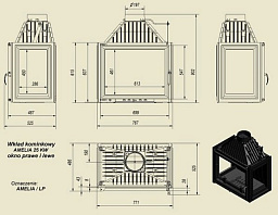 Двухсторонняя каминная топка с прямым стеклом. Топочная камера футерована шамотом. Подъёмный механизм двери (система Easy-Lift) с одной стороны. С другой стороны дверца откидывается для чистки. Возможен вариант топки с подъёмным механизмом с двух сторон (по запросу). Ширина дверки 982 мм. Высота дверки 422 мм. Возможно подключение воздуха из-вне.