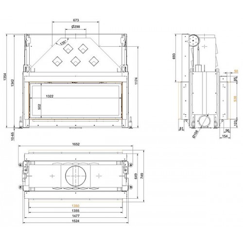 (При закрытии специальных «Тепловых штор» HeatSTOP в топочной камере сгорания сохраняется до 90% излучения. Жар камина экранирует обратно. Ваша прикаминная зона может приблизиться к очагу практически до 50 см.)