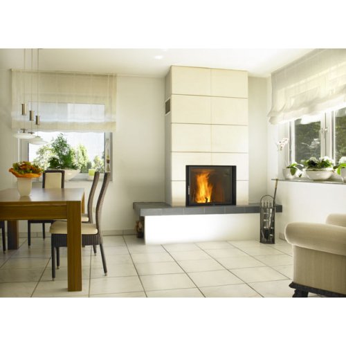 Стальная топка с прямым стеклом. Подъёмная дверца (Система Easy-Lift). Горизонтальное открывание двери для чистки стекла. Ширина дверки 656 мм, высота - 548 мм. Возможно подключение воздуха из-вне.
