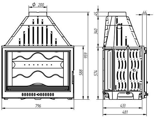 - Диаметр дымохода, мм: - 200
