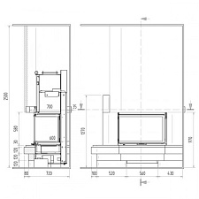 Термостойкость стекла до 800 гр Ц., в зависимости от модели топки, возможно применение двухстороннего или самоочищающегося стекла. Дымовая труба проходящая через длинный шибер для дополнительного теплого воздуха из газов - экономия на каждый день
