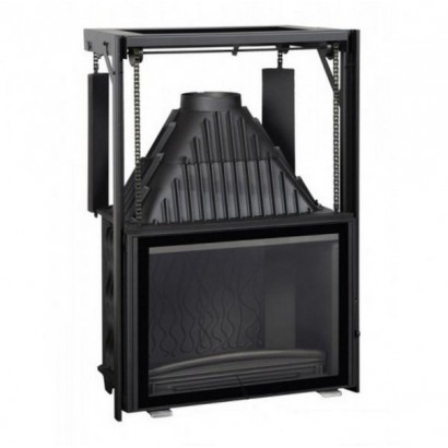 Invicta Grand Angle 700 (гильотина) изготовлена из высококачественного чугуна, являющегося оптимальным материалом для накопления и отдачи тепла - срок службы топки более 30 лет. Подключение дымохода верхнее. Дверца топки открывается вверх. Выполнена она с использованием современных технологий, которые отвечают европейской экологической норме NF, есть французский сертификат «Зеленое пламя». Чертеж Invicta Гранд Ангел 700 контргруз Инструкция по монтажу и эксплуатации каминных топок INVICTA