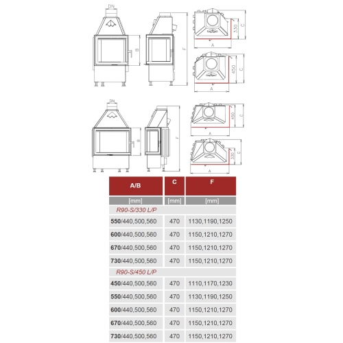 Каминная топка Kobok Corner 730 R90-S/450 L/P