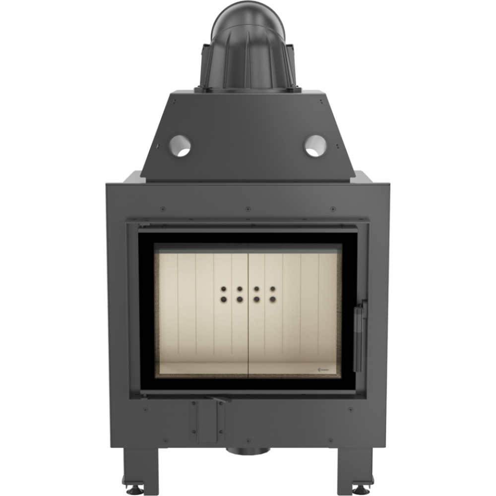 • Высокий переход из камина в дымоход и размещены поперек водяные дефлекторы увеличивают поверхность теплообмена между топкой и окружающей средой. Понижение температуры дымовых газов приводит к увеличению мощности устройства.