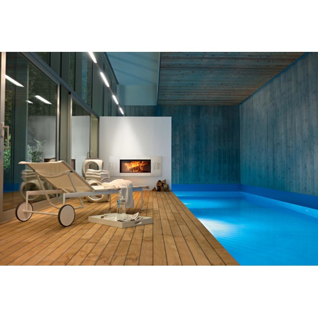 Самая широкая топка с прямым стеклом из модельного ряда компании. Каминная топка MCZ Forma 115 входит в инновационную серию Forma, в которой производитель отказался от принципа колосникового горения, исключив колосник из конструкции топки. За счет того, что кислород поступает в топочную камеру по всей ширине пода удалось добиться КПД равного 86,6%, максимального сжигания дров и красивого пламени, горящего сверху-вниз и контрастирующего с белой футеровкой из запатентованного самоочищающегося материала Alutec®.