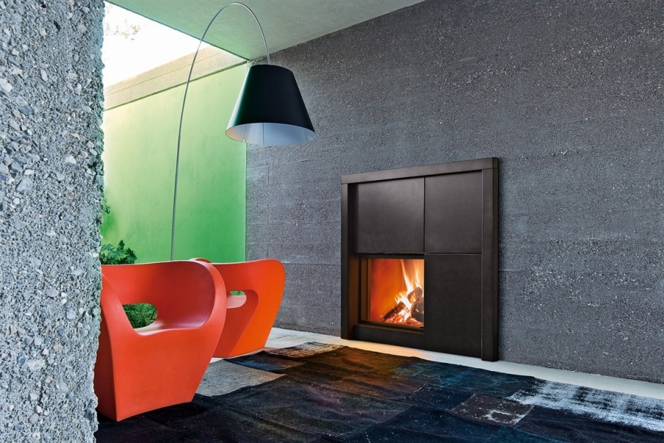 Закрытая дровяная rаминная топка MCZ Forma 75 со стеклянным фасадом, футеровкой топочной камеры из огнеупорного материала Alutec® и подъемным механизмом открывания дверцы (вертикально вверх), позволяющим визуально освободить топку от дополнительных линий, углов и ребер, тем самым сохраняя и подчёркивая её линейную конструкцию.