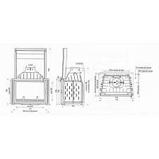 - - Мощность 13,5 кВт- Производительность 76%- Объем помещения 418 м3- Расход дров 2,8 кг/ч- Вес 260 кг
