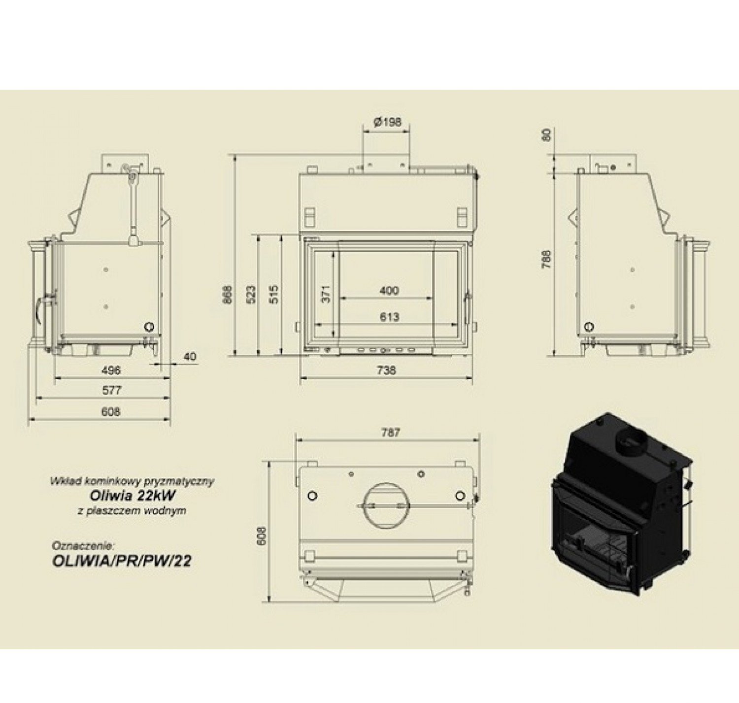 Каминная топка Oliwia/PR/PW/22 с водяной рубашкой
