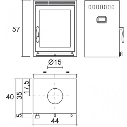 - Проем: Дверца из эмалированной стали с жаропрочным стеклом, выдерживающим температуру до 750°, с самообдувом. Дверца на петлях.