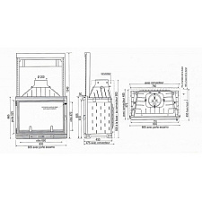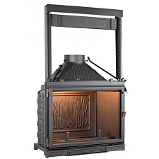 Каминная топка, выполненная из толстостенной стали. Задняя стенка из толстого чугуна. Дверь с бронзовой рамкой. В качестве горючего используются дрова. Дверь открывается, как в сторону, так и вверх.