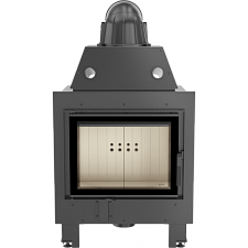 Чугунная топка для каминной облицовки. Прямая дверца с бронзовой рамкой. Огнепрочное трехстороннее стекло, выдерживающее высокую температуру. Дверца открывается в сторону. Система очистки стекла.