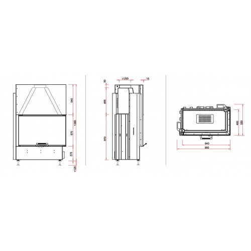 - Диаметр дымохода: 250