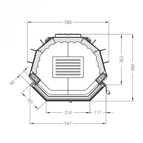 • Опциональная комплектация дополнительной задней дверцей для закладки дров из подсобного помещения.