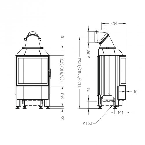 • Диаметр дымохода, мм: - 180