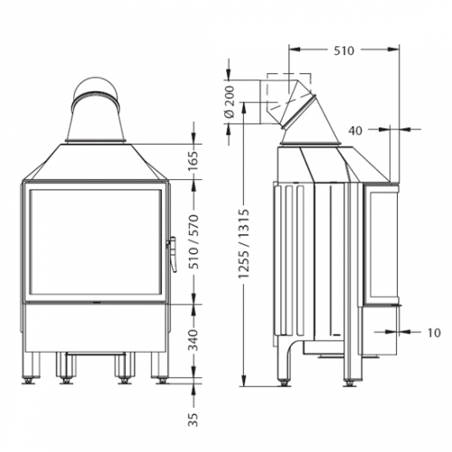 - Диаметр дымохода, мм: - 200