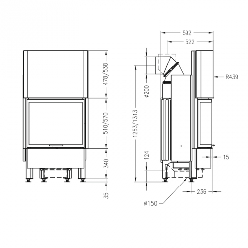 - Опциональная комплектация дополнительной задней дверцей для закладки дров из подсобного помещения.
