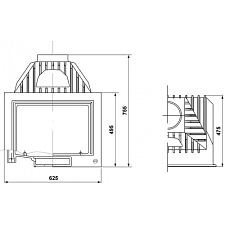 Универсальная топка изготовлена из чугуна. Плоское стекло. Подъемная дверца + боковое открывание.