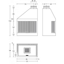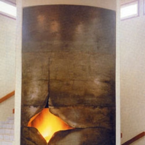 Mассивный ржавый стальной фасад (толщина 15 мм), вращающийся на петлях. Эта модель имеет отделку из огнеупорного кирпича и стеклянную дверцу, открывающуюся телескопически. Высокая энергетическая эффективность и очень низкий уровень СО позволили этой модели получить знак "Flamme Verte" и право на освобождение от налогового кредита во Франции.