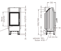 - > Камины поставляются с решетками, дымовыми контейнерами, клапанами, чугунными пластинами для настенной и угловых моделей.