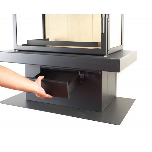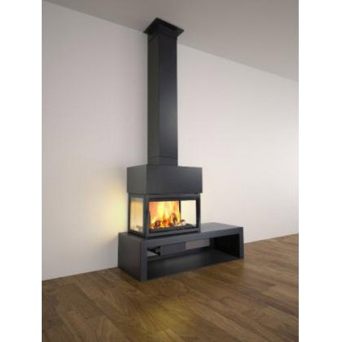 Пристенный камин с трехсторонним остеклением. Камин имеет боковую банкетку слева/справа. Корпус выполнен из стали с финишным покрытием черного цвета. Представленный камин отличается небольшими и компактными размерами, что позволяет устанавливать даже в небольших помещениях. Камин оборудован топкой, работающей на дровах. В топке реализованы система "чистое стекло" и функция вторичного дожига. Такой камин не только обогреет Ваше жилище, но и создаст в доме особую теплую атмосферу.