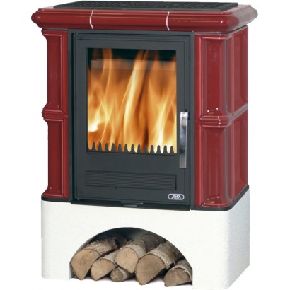 Кафельная печь Bavaria K - вставка комбо, прямой цоколь бордо