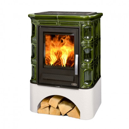 Кафельная печь Marina K вставка комбо белый цоколь зеленая