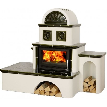 Самая большая кафельная печь в модельном ряду чешского завода «АВХ». Эта модель, безусловно, станет центральным предметом интерьера не только того помещения, где будет установлена, но, пожалуй, и всего Вашего дома. Сочетание изразцовых элементов и белой металлокерамической поверхности делает дизайн этого камина уникальным. Изготавливается в «левом» и «правом» исполнении. Камин комплектуется топкой с номинальной мощностью 10 кВт. Цвет облицовки может быть коричневым или зеленым. Наличие